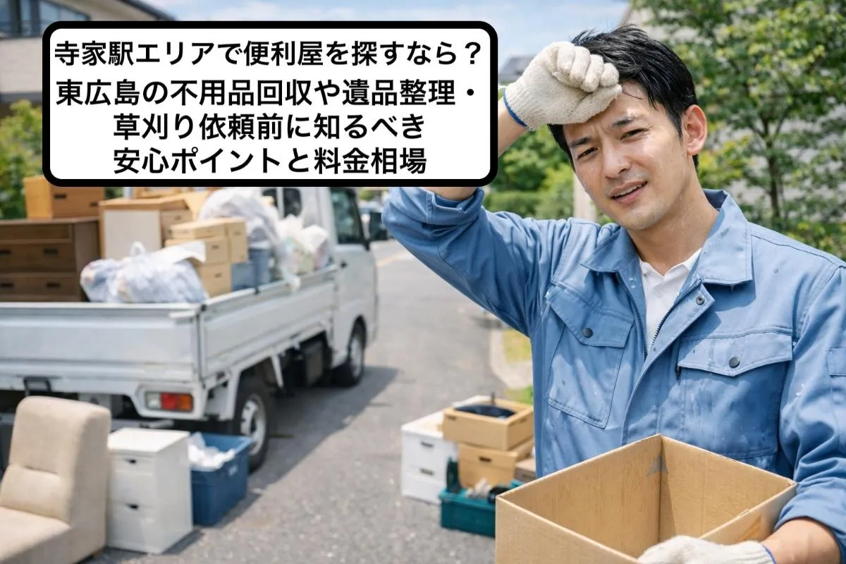 寺家駅エリアで便利屋を探すなら?東広島の不用品回収や遺品整理・草刈り依頼前に知るべき安心ポイントと料金相場
